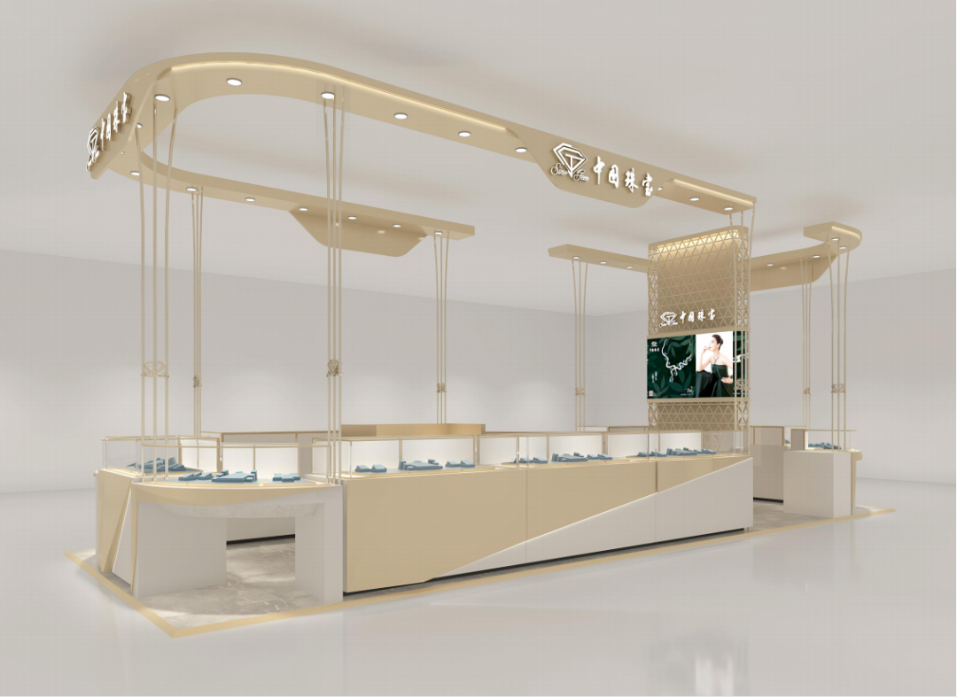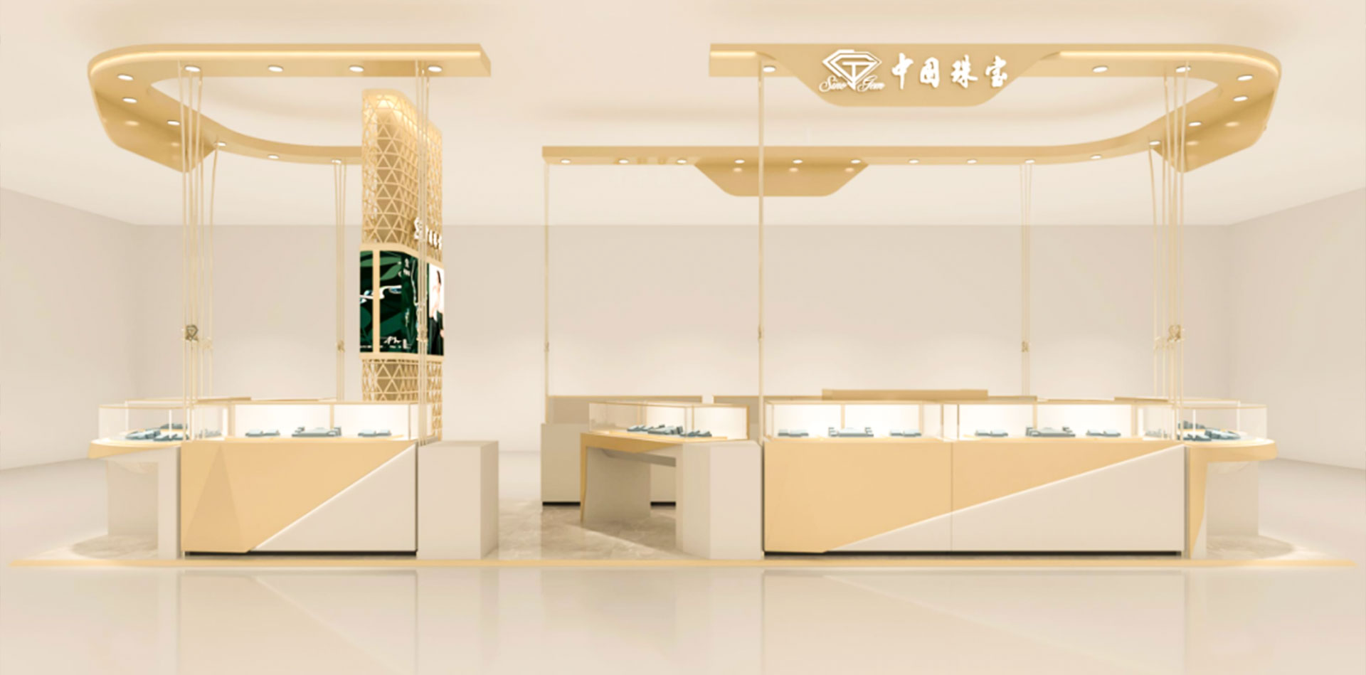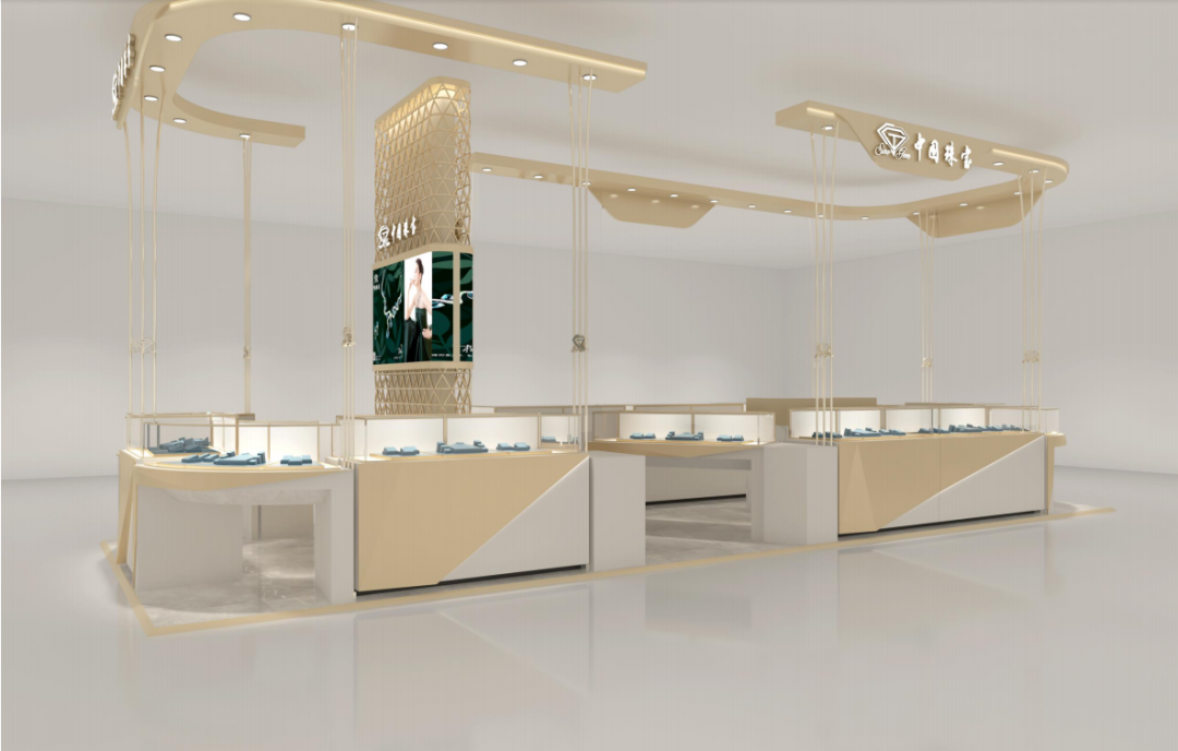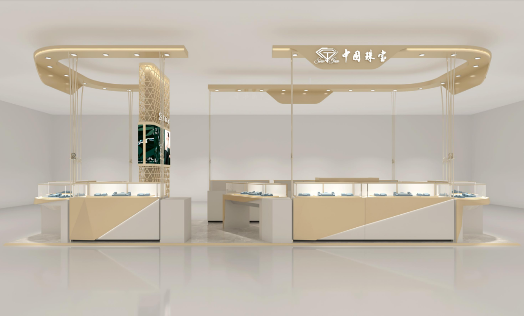 2023年5月10日,中國珠寶義烏金華萬達中島店正式開業?!爸袊閷殹逼放?Si系統的“中島”設計中,店面通過在最大的墻體或包柱上將統一的品牌形象墻呈現,使品牌形象更加突出,燈帶的設計與邊廳的門楣保持一致。鉆石切割式柜臺在整個空間中凸顯,增加品牌的獨特識別度。